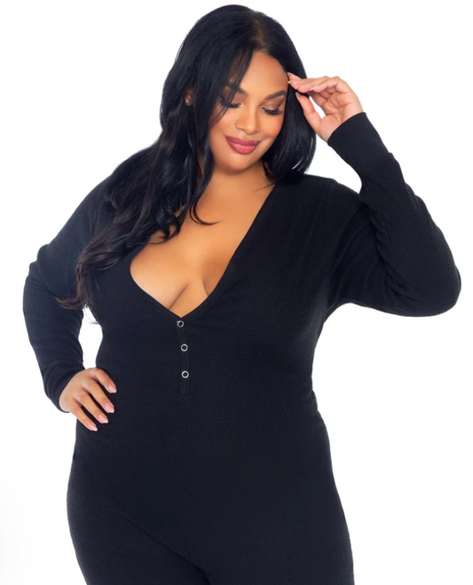 Zipper Front Long Sleeved Matte Romper - Large - Black