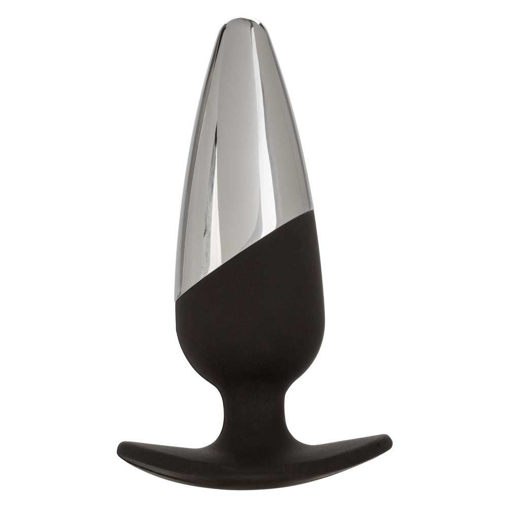 Give yourself over to the ecstasy of enhanced stimulation with the dual surfaced, CalExotics Executive Pro Plug. This passionate plug is made for streamlined pleasure with a thrilling metal tip, gently tapered probe and an EZ Grip flanged base for effortless insertion, stimulation and removal. The sleek probe gradually increases gently in girth to let you indulge in any level of anal play. While you indulge in knee-shaking sensations, use the flanged base for steamy stimulation, effortless insertion and gentle removal.