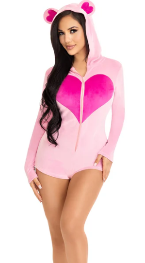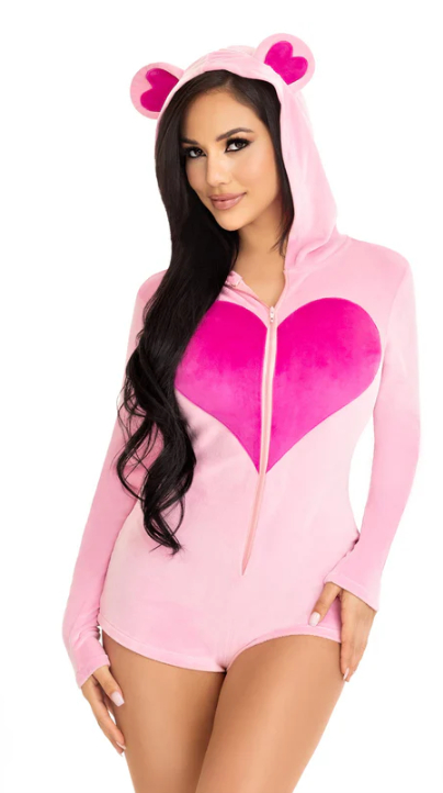 You’ll be the cutest (and coziest) bear in the Sweetheart Bear costume by Leg Avenue. This comfy onesie romper is perfect for lounging and doubles as a quick and easy Halloween costume! The ultra-soft plush velvet fabric of this cute costume will keep you comfy all night long, while the heart accents and ear hood keep you looking adorable.